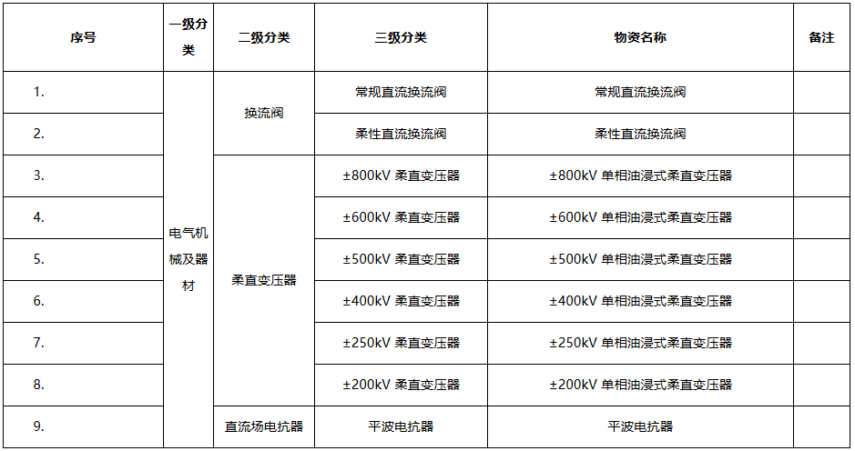 為保障藏東南至粵港澳大灣區±800千伏特高壓直流輸電工程的進度,現組織開展受端換流站直流主設備和材料采購工作,包括柔性直流換流閥及其附屬設備、柔直變壓器、直流穿墻套管、直流控制保護、直流測量裝置、直流場電抗器、柔性直流換流站用避雷器、直流場電容器、旁路開關與直流轉換開關、直流高速并列開關(HSS)、直流隔離開關和接地開關、直流絕緣子、直流管母、直流金具等物資。