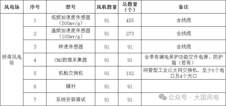 橋灣風電場的24臺京城FC2000-113風機和67臺華銳SL1500/77風機進行加裝在線振動監測裝置,數據接入集團運維中心,實現遠程故障診斷和預計功能。(注:玉門公司橋灣風電場與酒泉公司橋灣風電場共用在線監測軟件、核心交換機、數據處理服務器、防火墻、監控電腦等硬件,不再單獨報價)