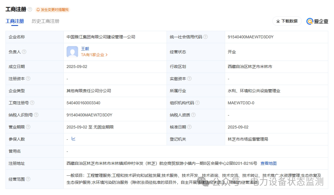 中國雅江集團有限公司建設(shè)管理二公司,負責(zé)人:劉國平,統(tǒng)一社會信用代碼為91540400MAETP6MQ41,企業(yè)注冊地址位于西藏自治區(qū)林芝市米林市派鎮(zhèn)吞白村雅江營地,所屬行業(yè)為水利管理業(yè)。