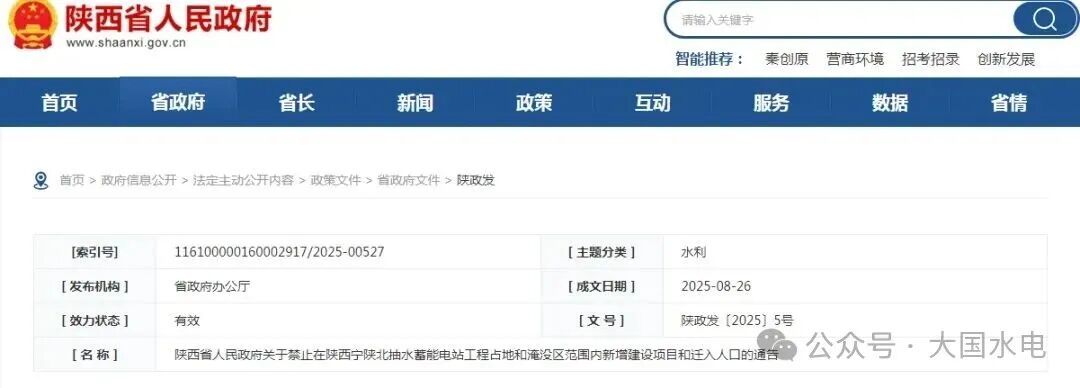 2025年9月11日,陜西省人民政府發(fā)布了《關(guān)于禁止在陜西寧陜北抽水蓄能電站工程占地和淹沒區(qū)范圍內(nèi)新增建設(shè)項(xiàng)目和遷入人口的通告》,標(biāo)志著這一總投資超百億元的重大能源基礎(chǔ)設(shè)施項(xiàng)目正式進(jìn)入實(shí)質(zhì)性建設(shè)前期階段。該通告旨在規(guī)范工程建設(shè)征地與移民安置工作,確保項(xiàng)目順利推進(jìn)。