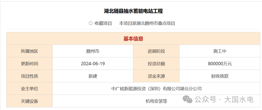 前期階段(2022-2023年)由隨縣城市開發投資有限公司作為項目前期業主,負責項目立項、勘察設計及可行性研究招標工作。中國電建集團中南勘測設計研究院有限公司以報價 158796700 元成功中標可行性研究階段勘察設計項目。